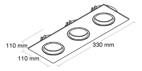 Luminária retangular de embutir com foco triplo direcional. Corpo em alumínio injetado tratado com acabamento em pintura eletrostática poliéster, resistente ao intemperismo e ao amarelamento.