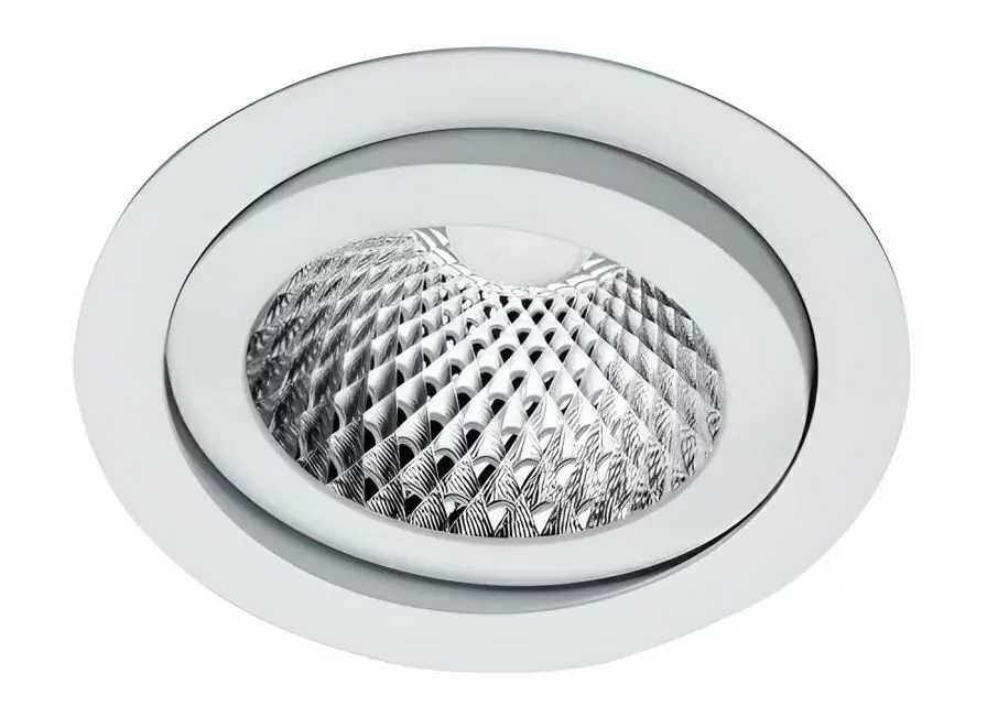 Luminária redonda de embutir com foco direcional. Corpo em alumínio injetado tratado com acabamento em pintura eletrostática poliéster, resistente ao intemperismo e ao amarelamento.